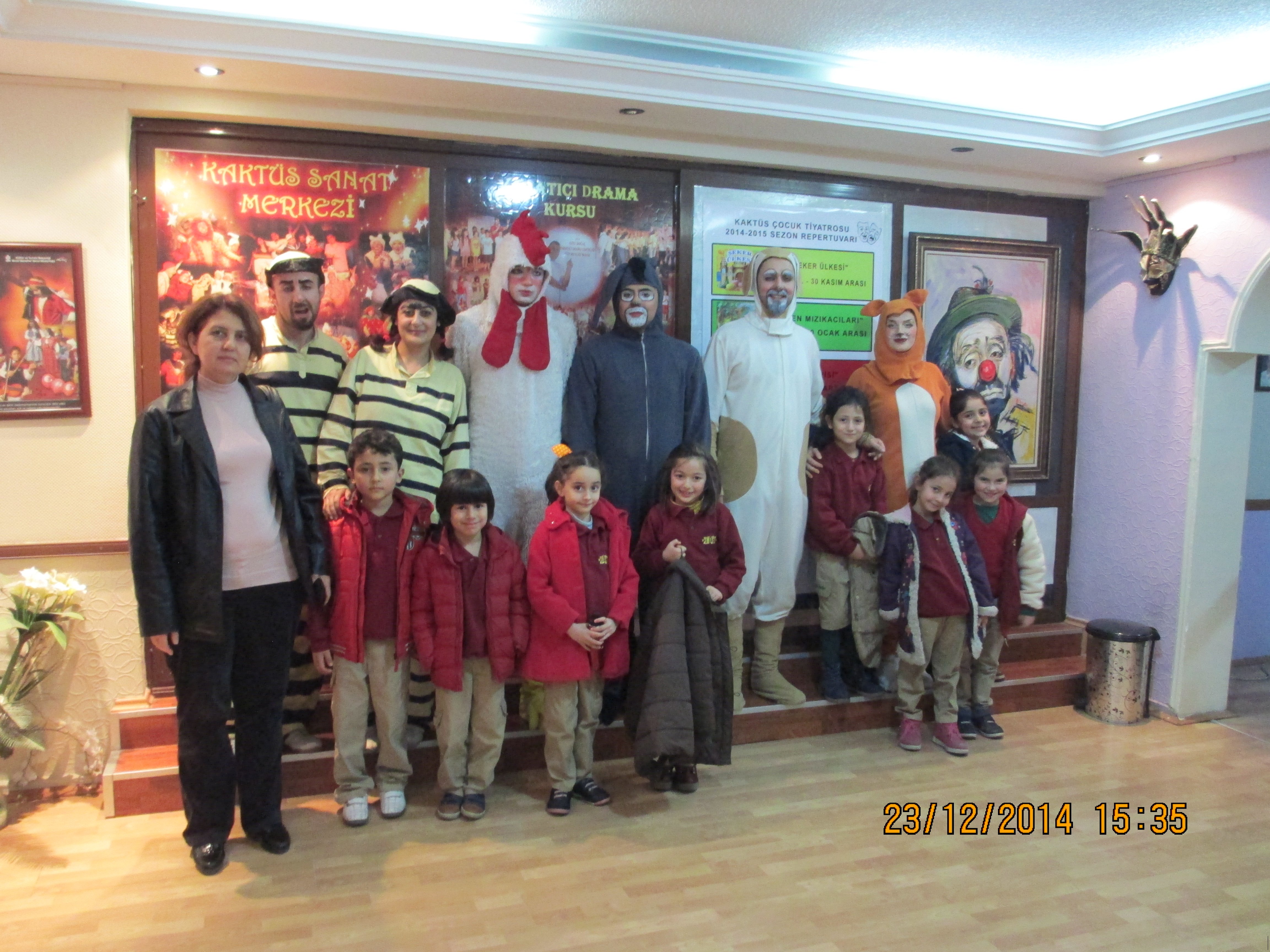 24 Aralık Çarşamba günü 1-A,1-B,2-A,3-A ve 3-B sınıflarımız Kaktüs Sanat Merkezi'ne "Bremen Mızıkacıları" isimli tiyatroyu izlemeye gittiler.Çocuklarımız bu tiyatro etkinliğinden büyük keyif aldılar.